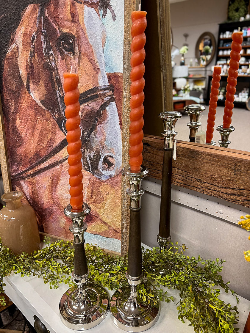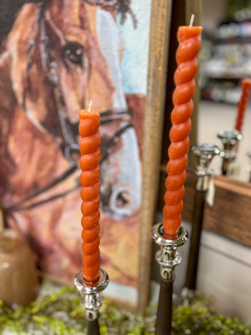 These taper candles are an effortless way to add both style and ambience to your home. They are unscented and come in a set of 2. Each features a detailed and unique twisted shape. These are add the perfect touch to intimate gatherings, dinners, and parties!