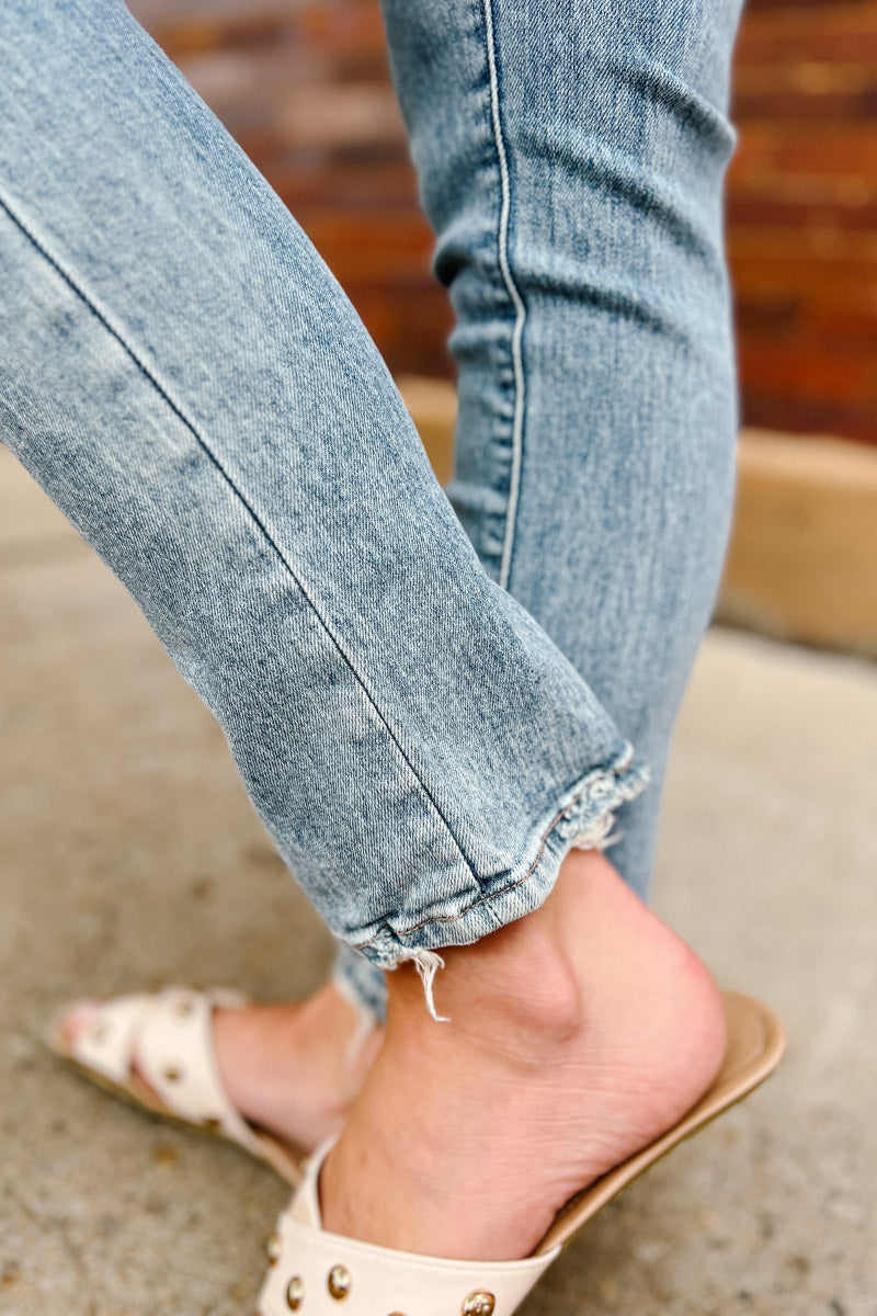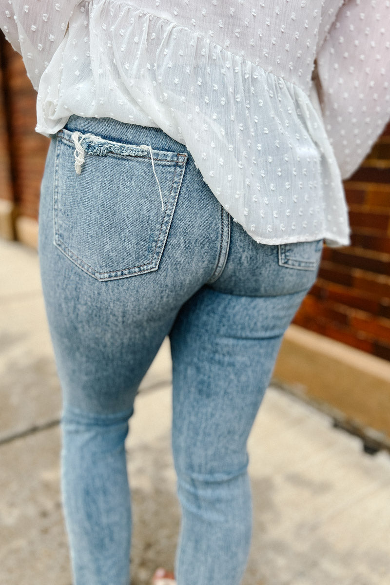 Dominate any look with our Daily Driver HR Skinny Straight jeans in Baby Face. With a medium, slight acid wash and minimal distressing, these jeans add just the right amount of edge to your business casual or everyday style. Be bold and take on the day in these must-have jeans!