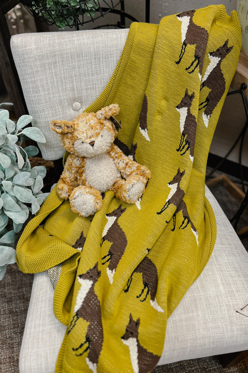A cozy knit blanket with a playful pattern brings warmth and charm to your space. The whimsical designs make it an ideal gift for babies. Perfect for snuggling in the nursery.