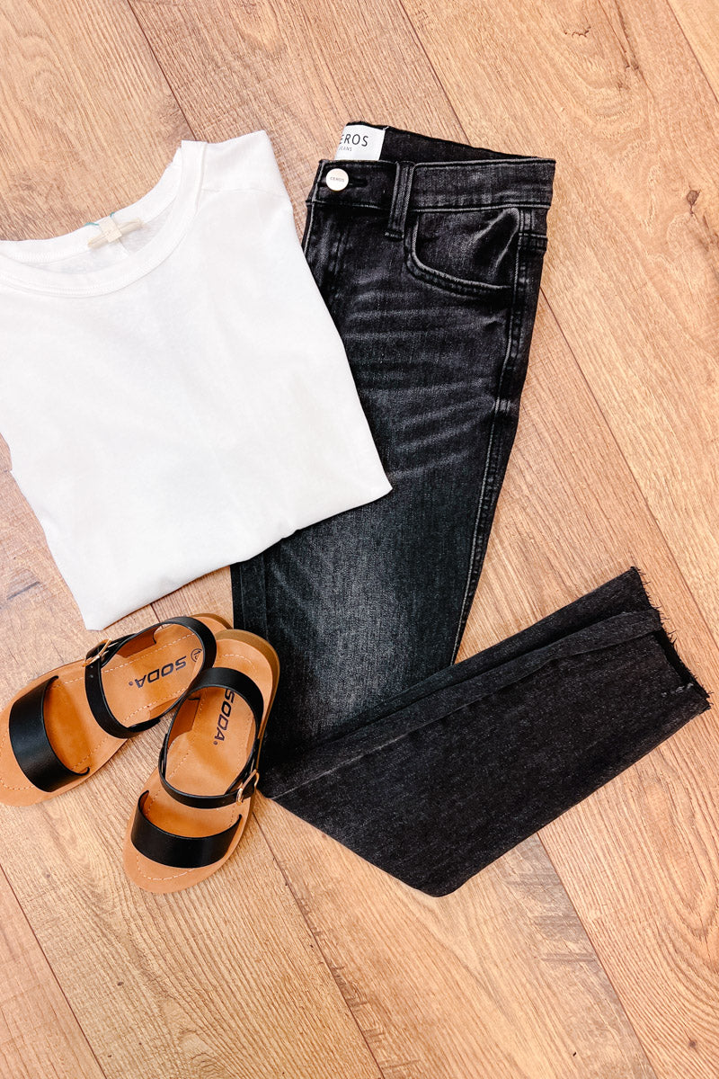 Introducing the Quinn Black Youth Skinny - a classic style with a modern twist. Made with a stone wash black design and a raw hem, this skinny fit is perfect for any occasion. Complete with minimal distressing detail at the ankles, this versatile piece is a must-have for any fashion-forward youth. Upgrade their wardrobe with style and comfort in mind.