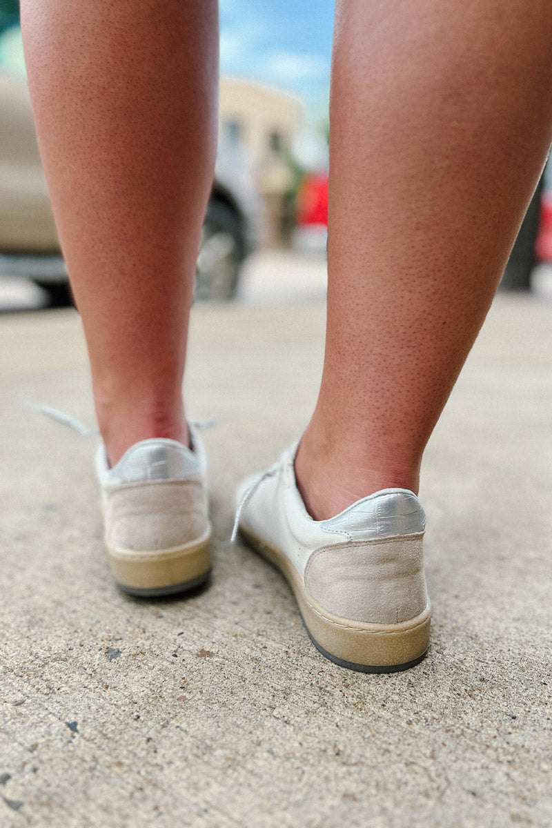 The Rosalia Sneaker combines premium faux leather and soft suede accents to provide a smooth, comfortable fit that supports your feet throughout the day. Metallic accents and glittery shoelaces add subtle flair, while the gold star design detail offers a touch of style. It's a great neutral choice for any outfit.
